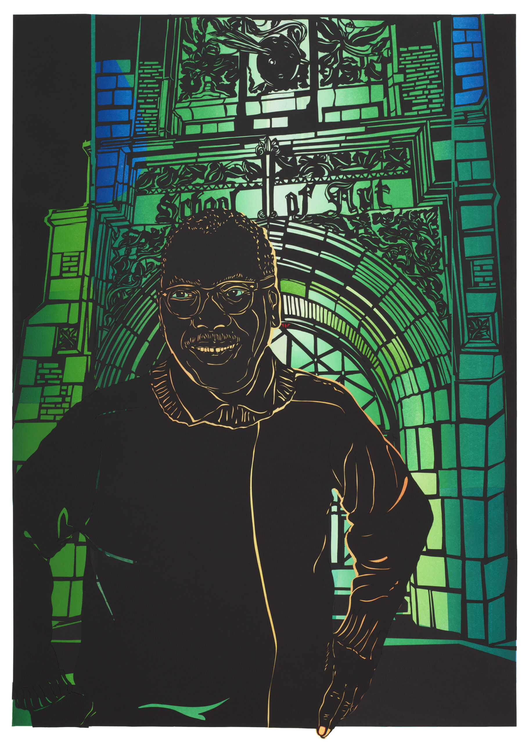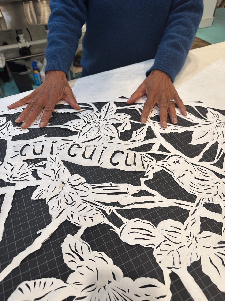 Cut paper and hand-printed color, 60 X 47 inches, 2021