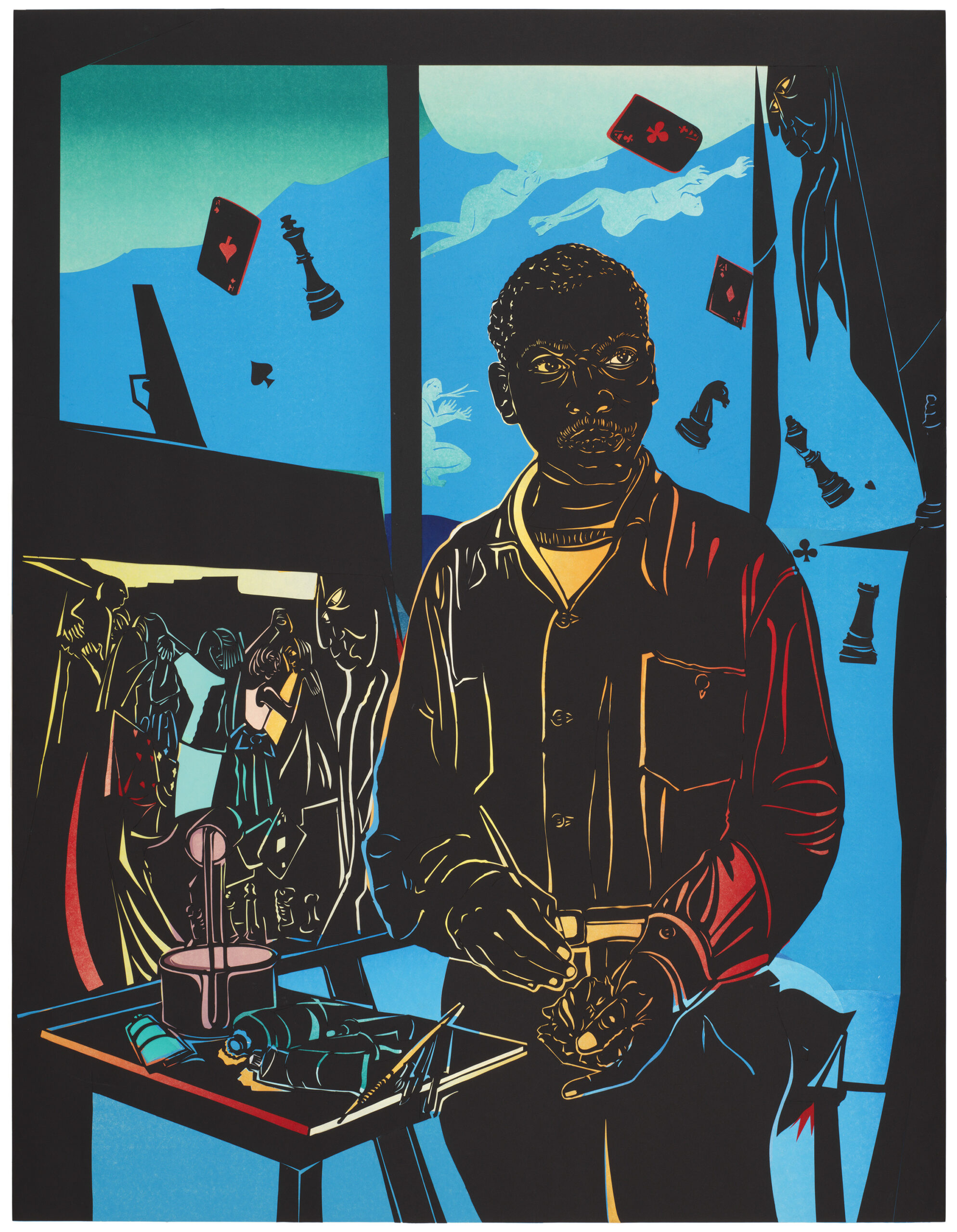 Cut paper and hand-printed color, 41.25 x 26.5 inches